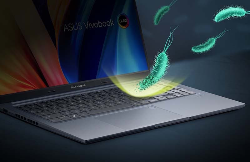 Normally, the surface of a laptop contains thousands of potentially harmful bacteria.To keep your laptop clean, ASUS Antibiotics Guard is a special surface treatment that inhibits more than 99% of bacterial growth, ensuring the surface of your laptop is clean.and reduce the spread of harmful bacteria through contact.